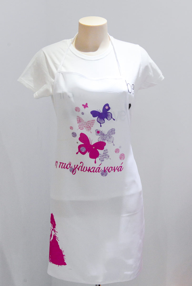 Ποδιά με εκτύπωση φωτογραφίας ή σχεδίου της επιλογής σας, σε λευκό χρώμα.